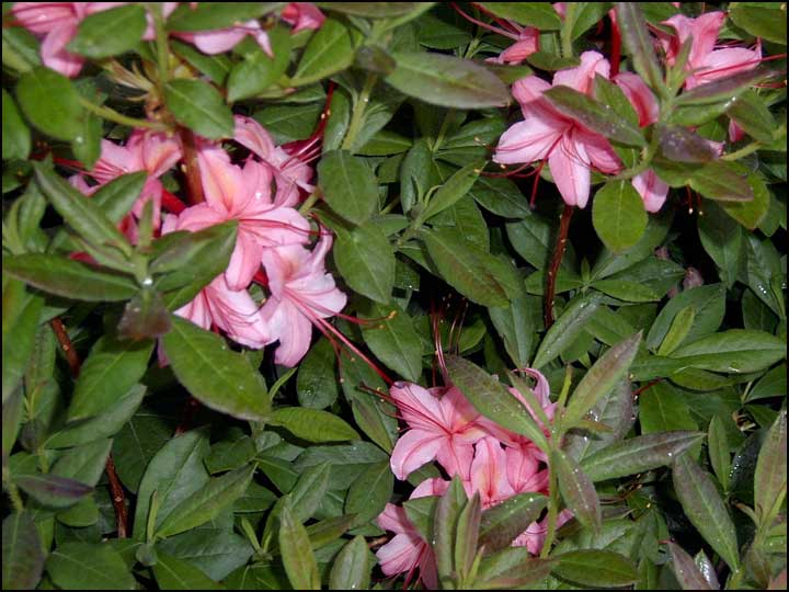 lightly fragrant pink flowers w/yellow flare in June, slow growing to 4'x4', mildew resistant