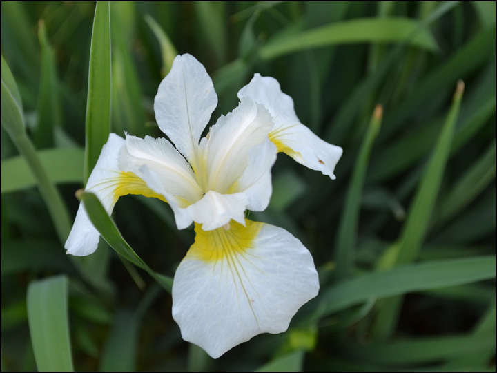 reed-like foliage, low maintenance plant; best in cool site w/slightly moist and acidic soil; white w/yellow flowers, blooms May/June