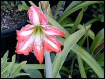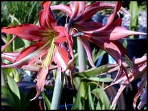 Mandevilla Crimson 1 gallon $18 perennial(tender) - tropical vine with glossy green foliage and cardinal red trumpet shaped flowers from late spring to frost, to 6', full sun and sharp drainage |