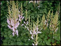 Astilbe "Peach Blossom" 2 gallon $24 early blooming, salmon-pink flowers (2'); light shade |