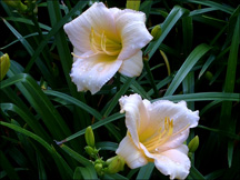 Hemerocallis "Barbara Mitchell" continuously popular daylily, pale lavender flowers with bright green throat, lightly ruffled, to 2' |