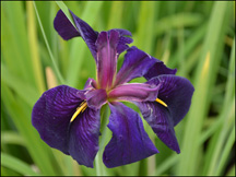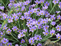 Sisynchrium Bermudianum grass-like foliage to 18"; deep purple flowers w/yellow centers; blooms May/June |