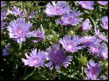 Stokesia "Klaus Jelitto"Stoke's Aster larger darker 4-5" flowers than species on stems to 18", deep green glossy straplike foliage |
